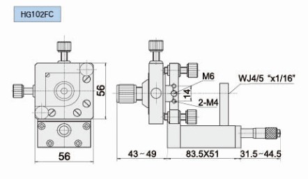 ● HG102FC 型精密光纖耦合器與顯微物鏡座一體化,便于光束與光纖耦合;