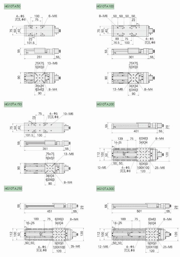 | 行程(mm) | 50 | 100 | 150 | 200 | 250 | 300 |