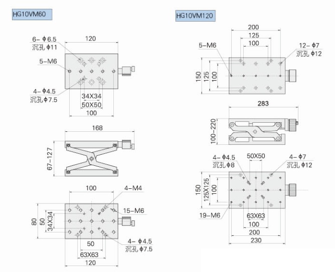 ●臺面與底板多孔位設計,升降手輪帶鎖緊。